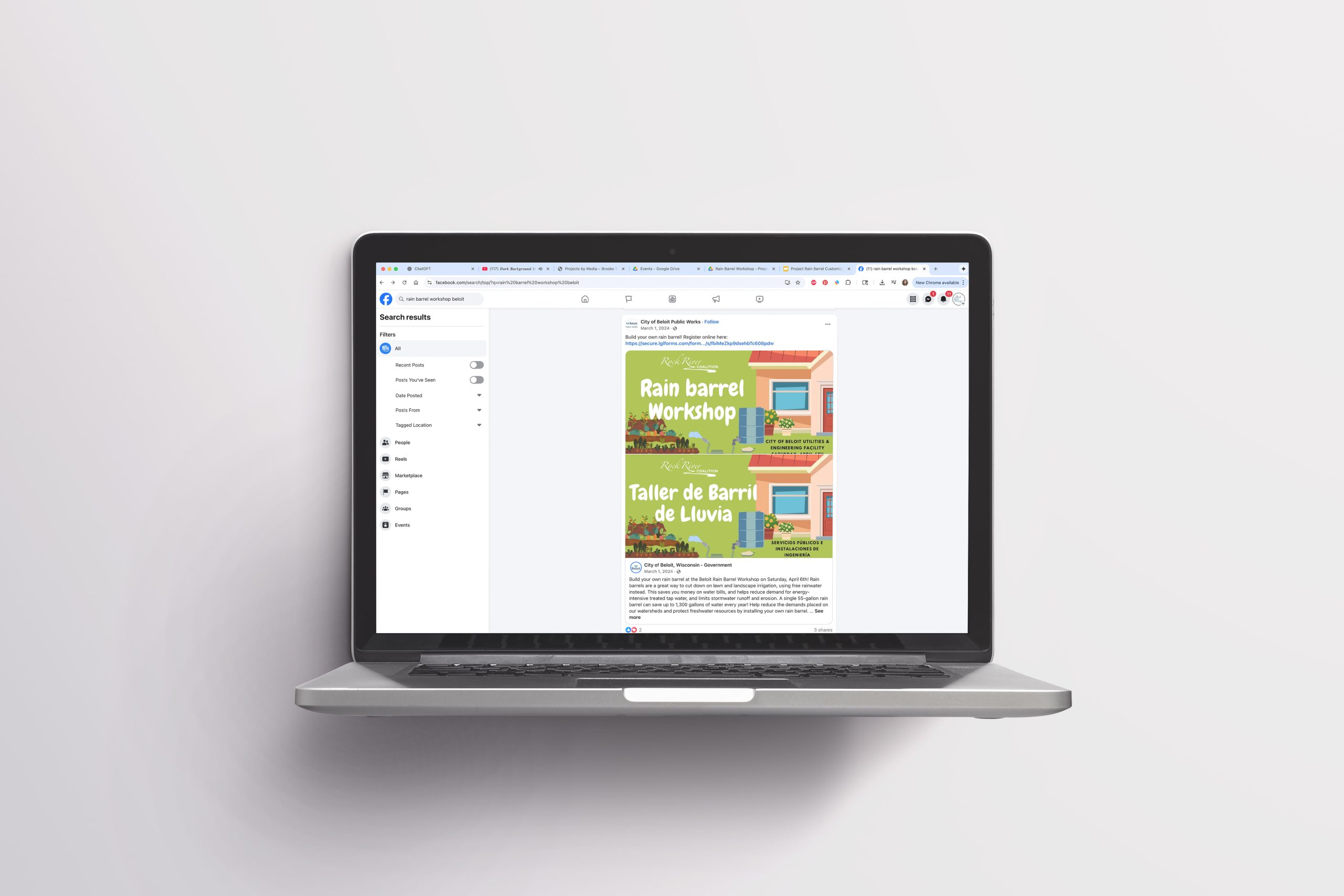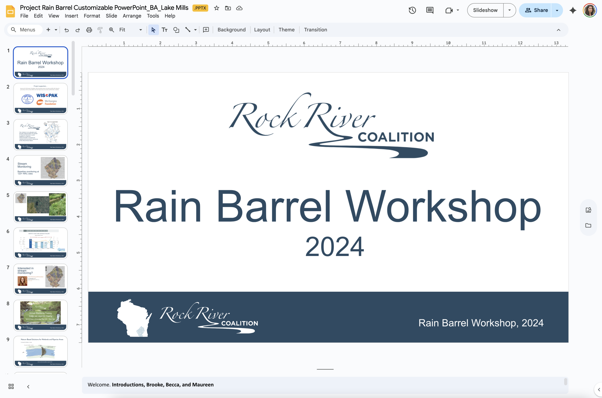 In my position as Graphic Designer and Events Coordinator I ran the rain barrel workshops. This included marketing (social, e-news, place), managing registration, facilitating supplies, creating and delivering an informative presentation on water conservation and quality tailored to the host city’s water concerns.